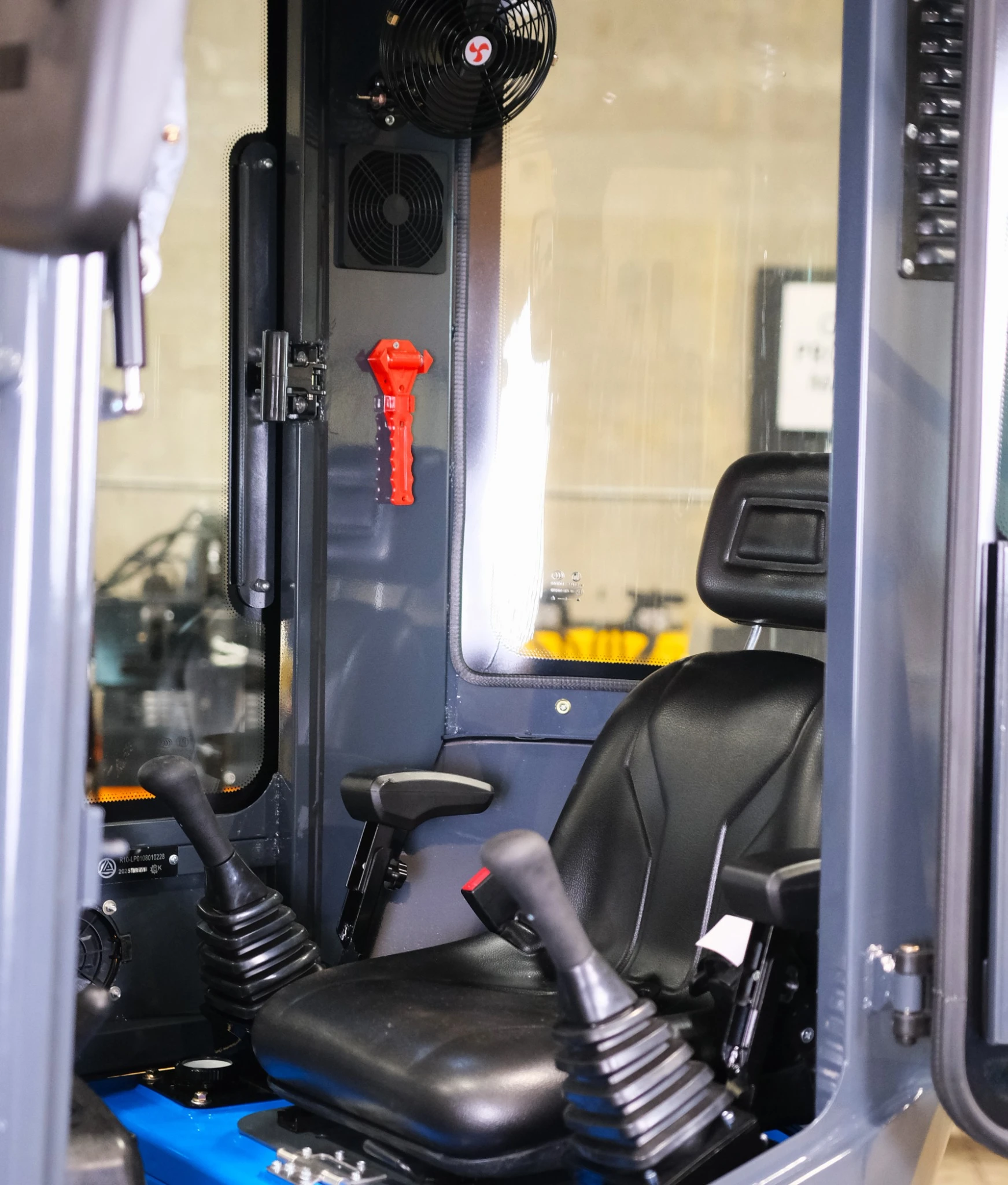 Controls: ergonomic joysticks, safety glass, ventilation fans