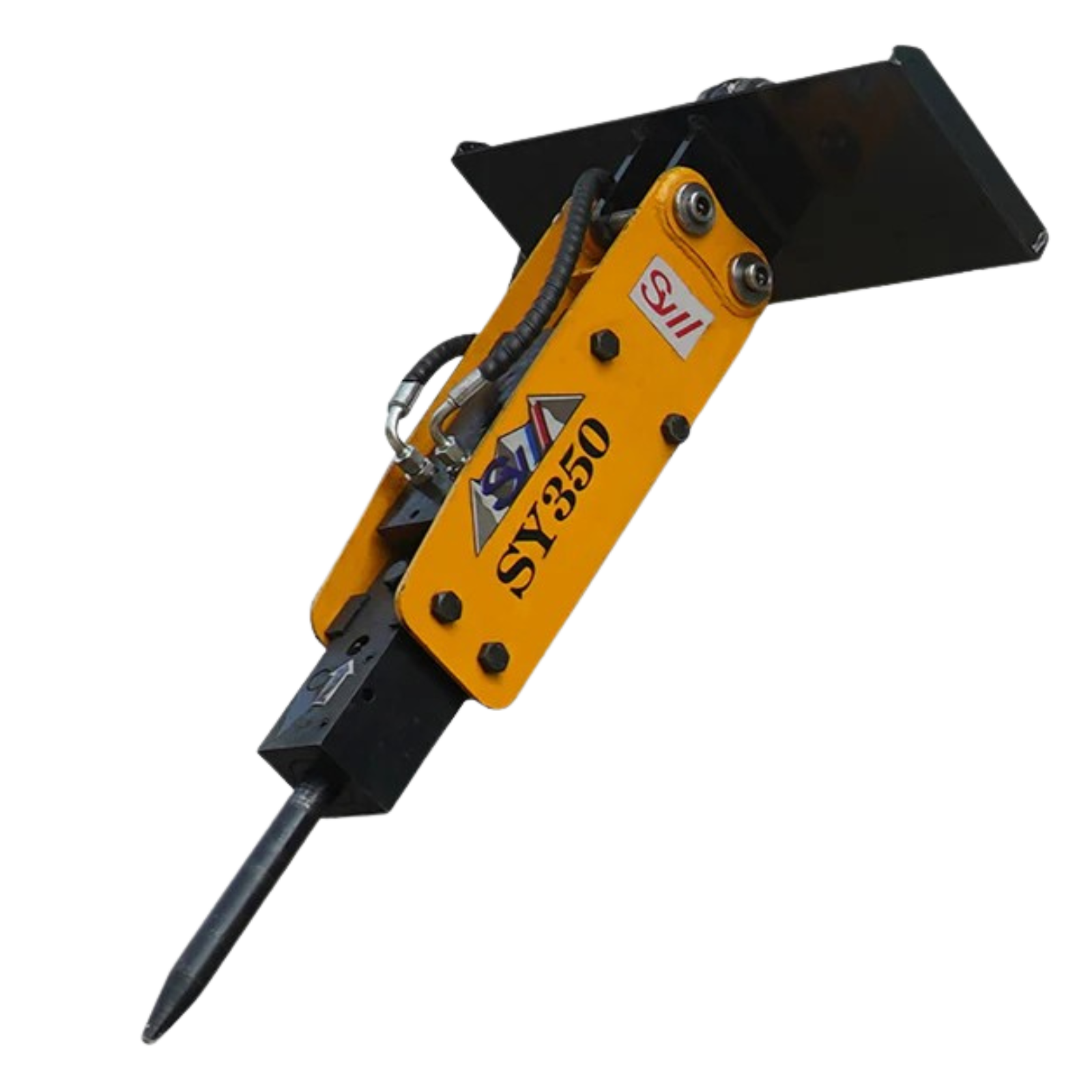 The SY350-class breaker offers the performance of larger hammers in a size optimized for mini skid steers, making it ideal for landscaping, light demolition, and construction tasks in confined areas. Powered by your loader’s auxiliary hydraulics, it operates seamlessly with responsive control, allowing you to tackle tough jobs where bigger machines can’t reach.